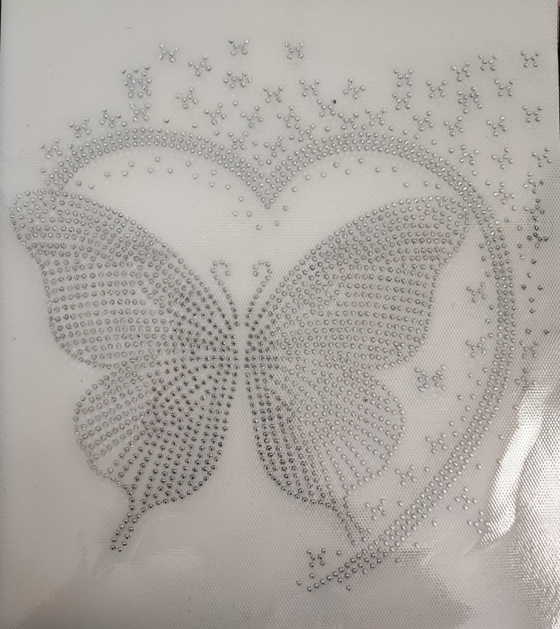 برچسب نگینی حرارتی کد ۵۲ نقره‌ای قلب و پروانه